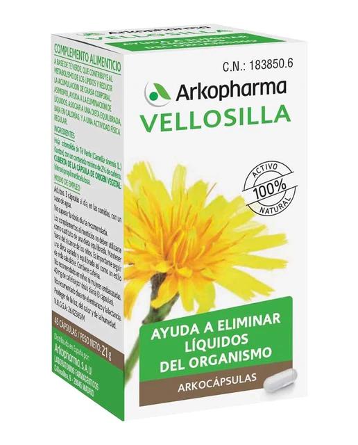 Descripción del Producto Las cápsulas dietéticas Vellosilla Arkopharma ayudan a eliminar líquidos del organismo. Su formato incluye 45 cápsulas. Otros Detalles EAN: 3578835310573